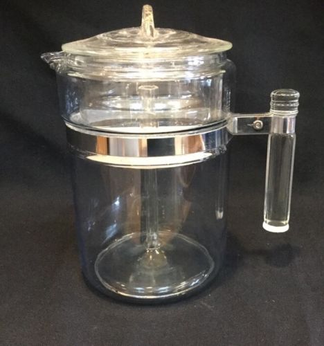 Pyrex Milk Glass Basket Flameware 6 Cup Stove Top Percolator Coffee Pot Complete