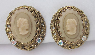 Vintage Beige Milk Glass Cameo Earrings West Germany