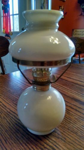 Title (ebay affiliate link): Small 9.5" Vintage Milk Glass Shaded Hurricane Oil lamp~1950's ~Working Order~