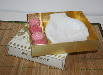 Vintage Milk Glass Soap Dish Hands with Soap Avon Touch of Beauty New in Box
