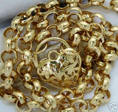 Title (ebay affiliate link): BELCHER HEART PADLOCK YELLOW GOLD FILLED NECKLACE 70G