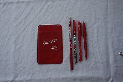 Coca Cola Pocket Protector, 3 Pens, 1 Pencil - Mint