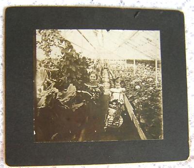 Antique Cabinet Photo 2 Girls in Greenhouse With Doll