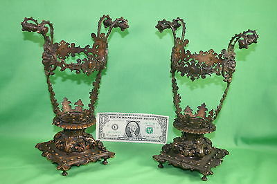 Vase Holders Ornate Bronze Vintage Set of 2 (M175)