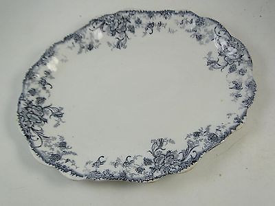 Antique Victorian Transferware Flow Blue Platter Tray Serving England Flower Vtg