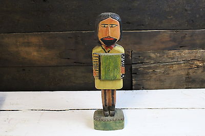 Hand Carved Man Playing an Accordian, Wooden Figure Carving