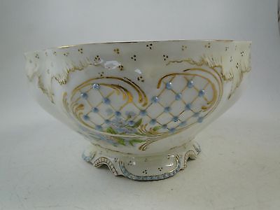 Antique Limoges France Bone China Porcelain Finger Bowl Dish Jeweled Lattice Vtg