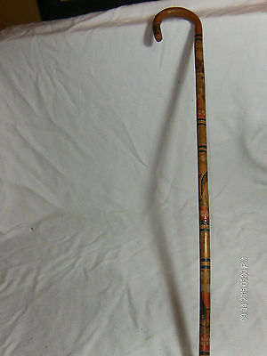 Vintage Walking Cane Stick Aztec Mexican Folkart Mexico Carved Primitive 35"