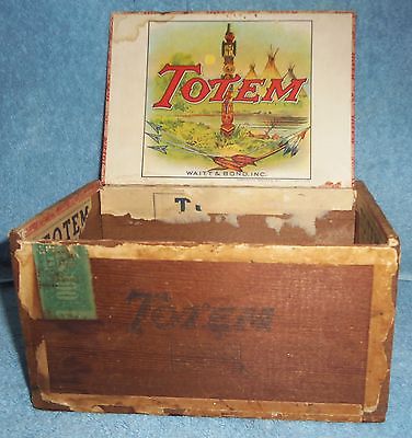 Antique TOTEM Wood Wooden Cigar Box Waitt & Bond Boston Mass.OLD