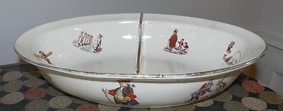 ANTIQUE FRENCH Pottery Divided Bowl COMICAL MOTIFS