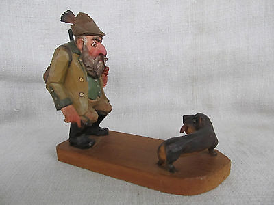 Vintage CARVED FIGURE HUNTER with DOG DACHSHUND GERMANY Wooden Hand painted