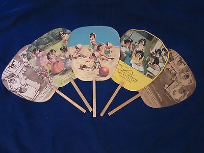 Ad fan,cardboard,lot of 5,Dionne Quints,school,beach,garden,highchairs,1935-40