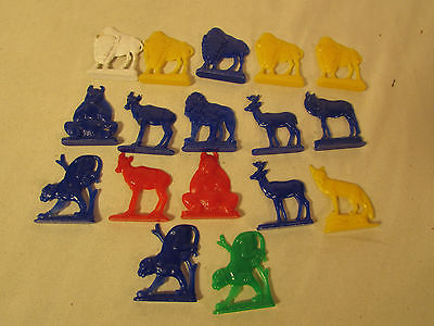 17 VINTAGE PLASTIC Flat Animals Cracker Jack or other Vending Premiums Prize
