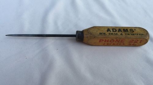 Title (ebay affiliate link): 1930s Adams Ice, Coal & Transfer -- Ice Pick -- Phone 221 -- Jackson, Mo