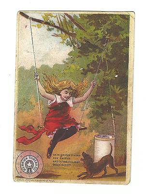 Old Trade Card Merrick Thread Girl Swing JH Harris General Store Libertytown MD
