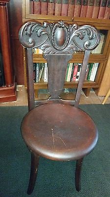 Rare Antique Adjustable Piano Stool Mahogany Carved Back Michigan Chair Pat.1897