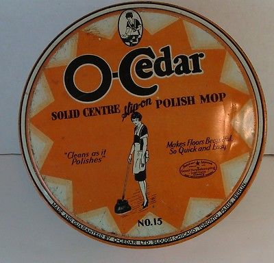 Title (ebay affiliate link): 1915 Rare O-Cedar Polish Mop Advertising Tin Slough, Chicago