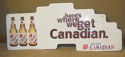 Title (ebay affiliate link): Large Vintage Metal Sign For Molson Canadian Lager "Heres Where We Get Canadian"