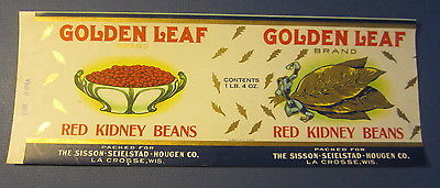 Title (ebay affiliate link): 1923 GOLDEN LEAF Red Kidney Beans Can LABEL Sisson Seielstad Hougen LA CROSSE WI