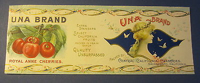 Old c.1900 - UNA - CHERRIES Can LABEL - Central California Canneries Sacramento