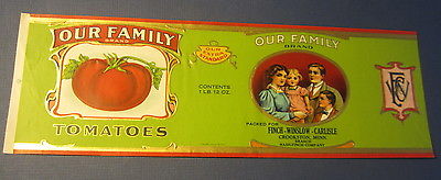 Old Vintage OUR FAMILY Tomatoes Can LABEL Finch Winslow Carlisle CROOKSTON MINN