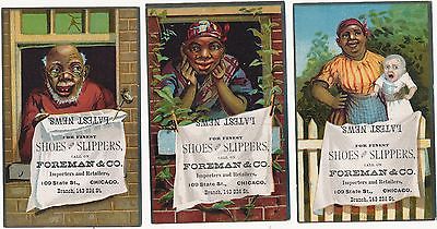 3 Victorian Trade Card Chicago Foreman & Co Shoes Slippers Black Americana