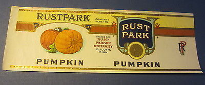 Old Vintage Rustpark PUMPKIN Can LABEL Rust Parker Co Duluth Minn Calvert Litho