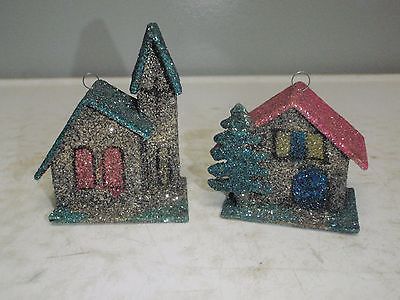 VINTAGE PUTZ MICA CHRISTMAS HOUSE AND CHURCH ORNAMENTS/DECOR. JAPAN