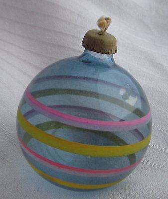 Title (ebay affiliate link): Old WWII USA Glass Blue Unsilvered Striped Ball Christmas Ornament Paper Cap Top