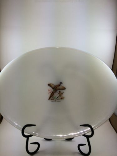 Title (ebay affiliate link): Vintage Milk Glass Fire King Ring Necked Pheasant Game Bird Hunter Platter