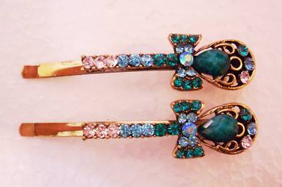 Title (ebay affiliate link): ANTIQUE STYLE GREEN SWAROVSKI CRYSTALS BOW HAIR CLIPS