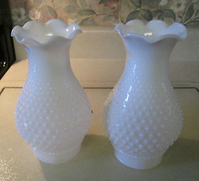 Set of 2 Vintage Hobnail Milk Glass Hurricane Chimney Lamp Shade Globe GUC