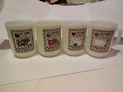 anchor hocking 1981 rodger johnson milk glass coffee 4 mug sheep pig cow chicken