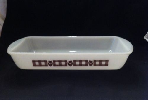 Vintage Pyrex Glasbake Milk Glass Brown Gingham Tulips Design Lasagna Pan