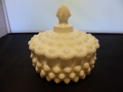 Vintage Collectible Fenton White Milk Glass LARGE Hobnail Covered Candy Dish
