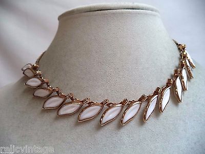 STUNNING VINTAGE ESTATE GOLD TONE SIGNED TRIFARI MILK GLASS NECKLACE!!! 4138Y