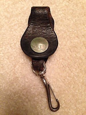 Vintage Leather Button Snap Belt Loop Key Chain Buffalo Nickel Clip