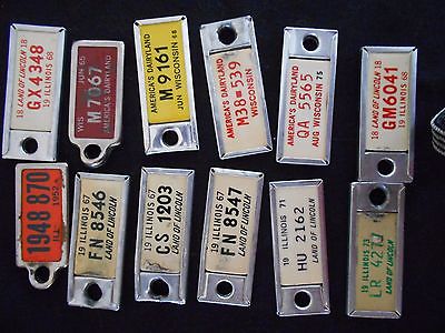 VTG Mini Keychain License Plate Lot of 12 DAV IL, & WI,1950s 1960s 1970's