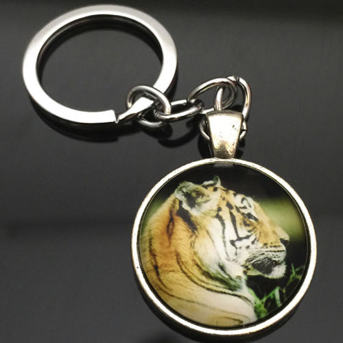 hot Vintage Tiger Cabochon Tibetan silver Glass Key Chain ysk011~#