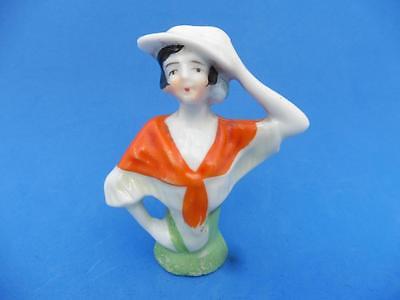 Vintage Antique Half Doll 3" (8cm) Art Deco Lady & Hat Pin Cushion / Cake Topper