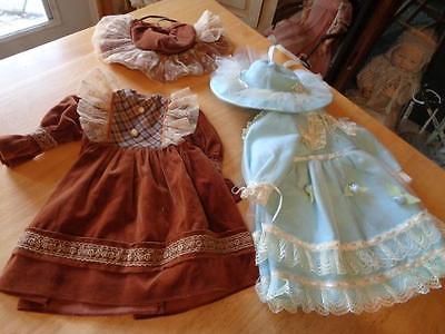 Title (ebay affiliate link): 2 Nice Homemade Doll Dresses & Bonnets For Antique Reproduction Dolls~
