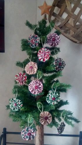 Title (ebay affiliate link): Set of 12 handmade primitive button Yo Yo ornaments Christmas colors