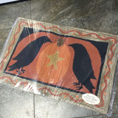 Title (ebay affiliate link): AMAZING AUTUMN HOOKED RUG...with Pumpkin And Crows...unique
