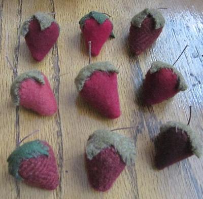 9 PRIMITIVE WOOL BOWL FILLERS EMERY STRAWBERRY STRAWBERRIES PFATT LOT