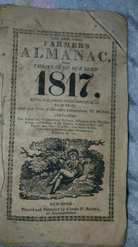 Antique 1817 NEW YORK FARMERS ALMANAC Charles Baldwin