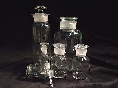 Title (ebay affiliate link): APOTHECARY MEDICINE CHEMISTS BOTTLES WITH STOPPERS: LOT OF 6.