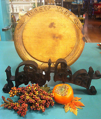 ANTIQUE ENGLISH BREAD BOARD, "WASTE NOT" -- BEAUTIFUL!
