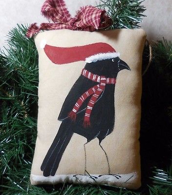 Title (ebay affiliate link): Primitive Folk Art CHRISTMAS CROW Santa Hat Pillow Tuck Wall Hanger Winter