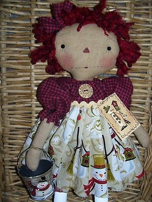 Title (ebay affiliate link): PRIMITIVE ~RAGGEDY ANN~SNOWMEN AND BIRDHOUSES~HP SNOWMAN BUCKET~