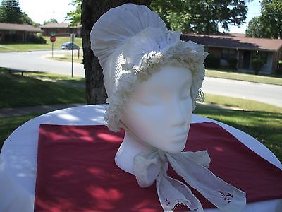 Antique 19th Century Bonnet With HIGH Ruffle Layers & Lace Trim